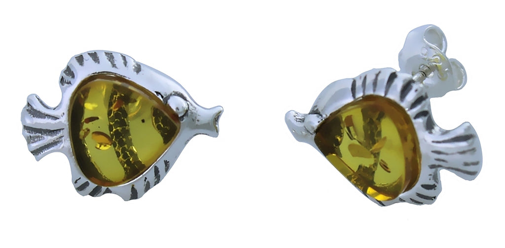 Genuine Baltic Amber - Fish Pendent - 925 Sterling Silver