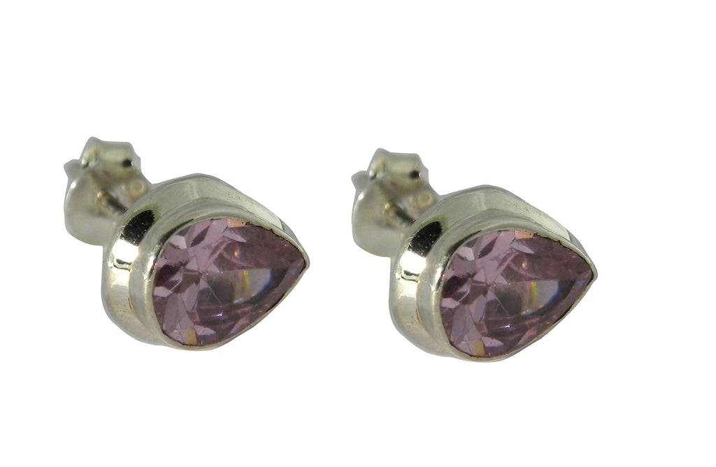 Pink Topaz Oval Stud Earrings - Sterling Silver