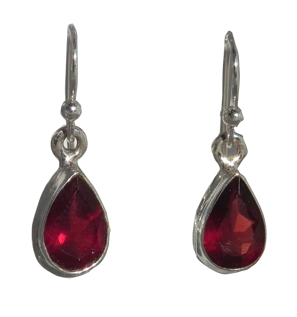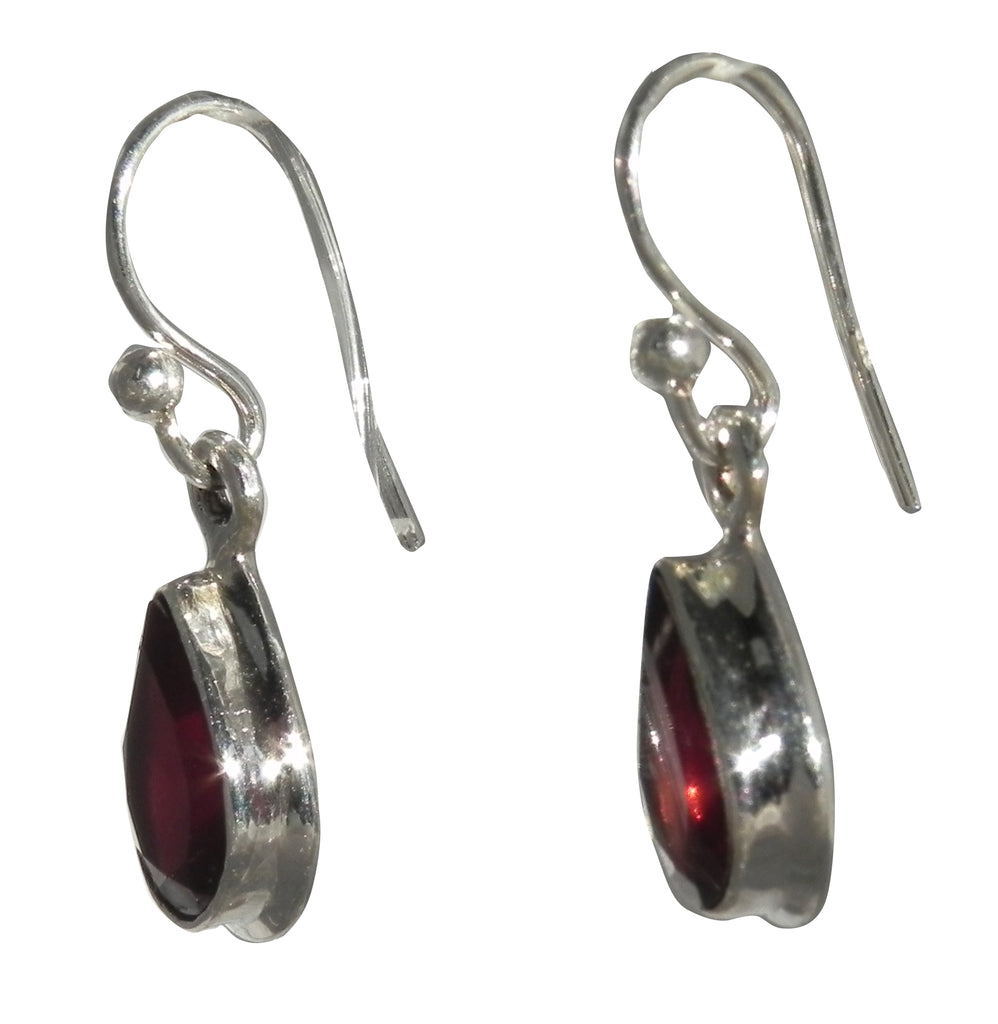 Garnet Teardrop Drop Earrings - Sterling Silver
