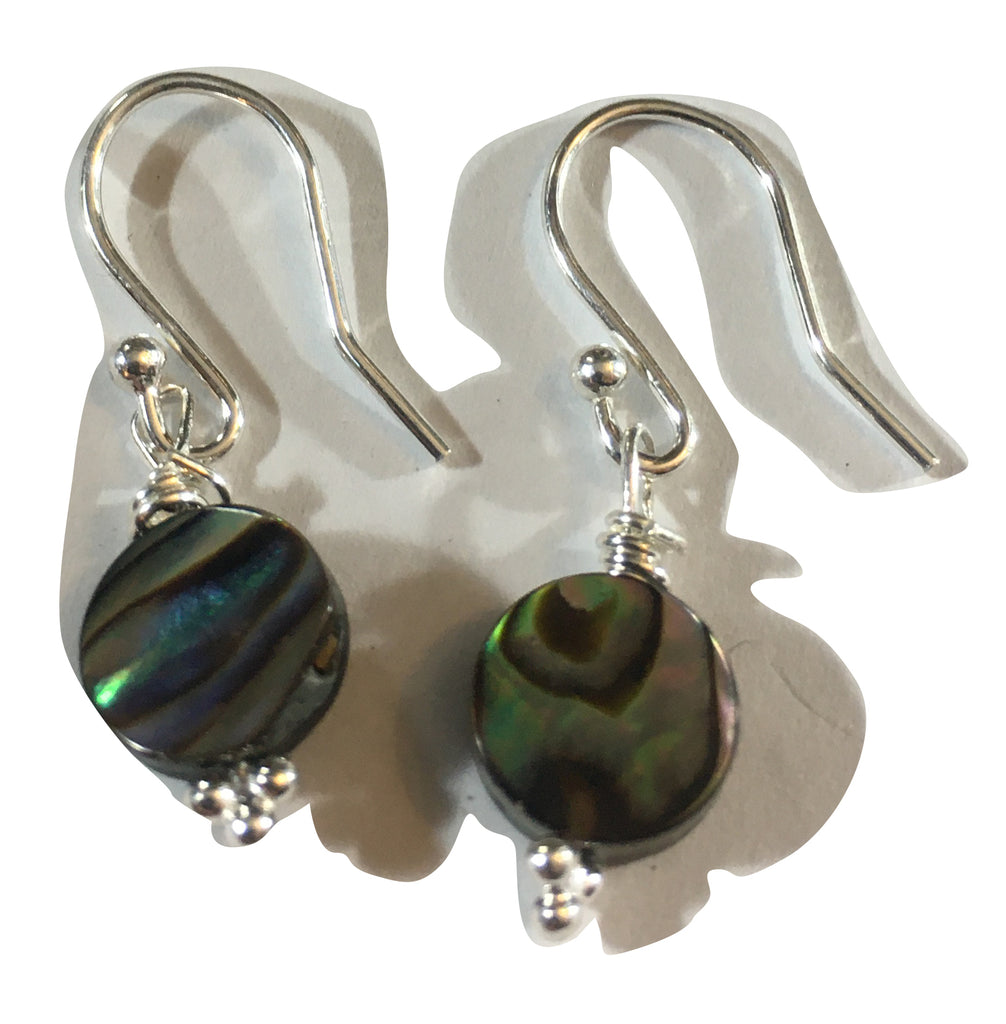 Abalone Circular Bead Earrings - Sterling Silver Hooks
