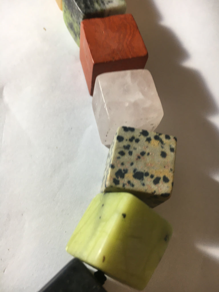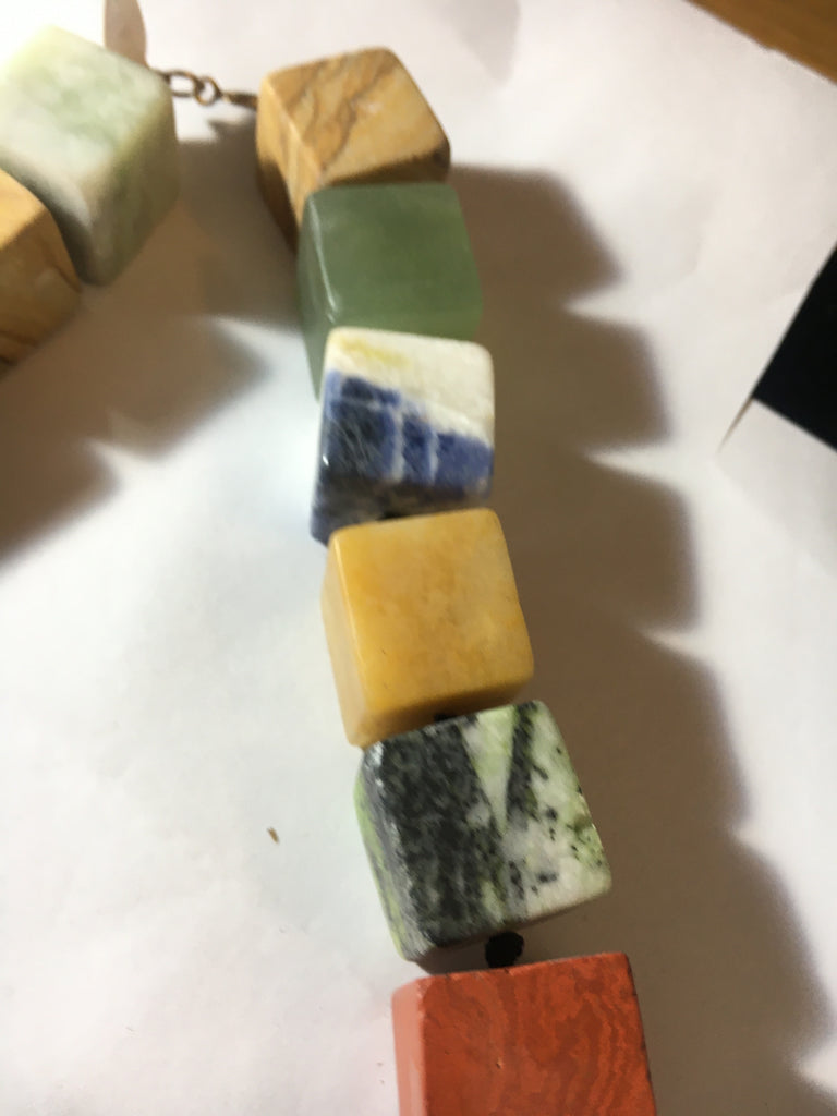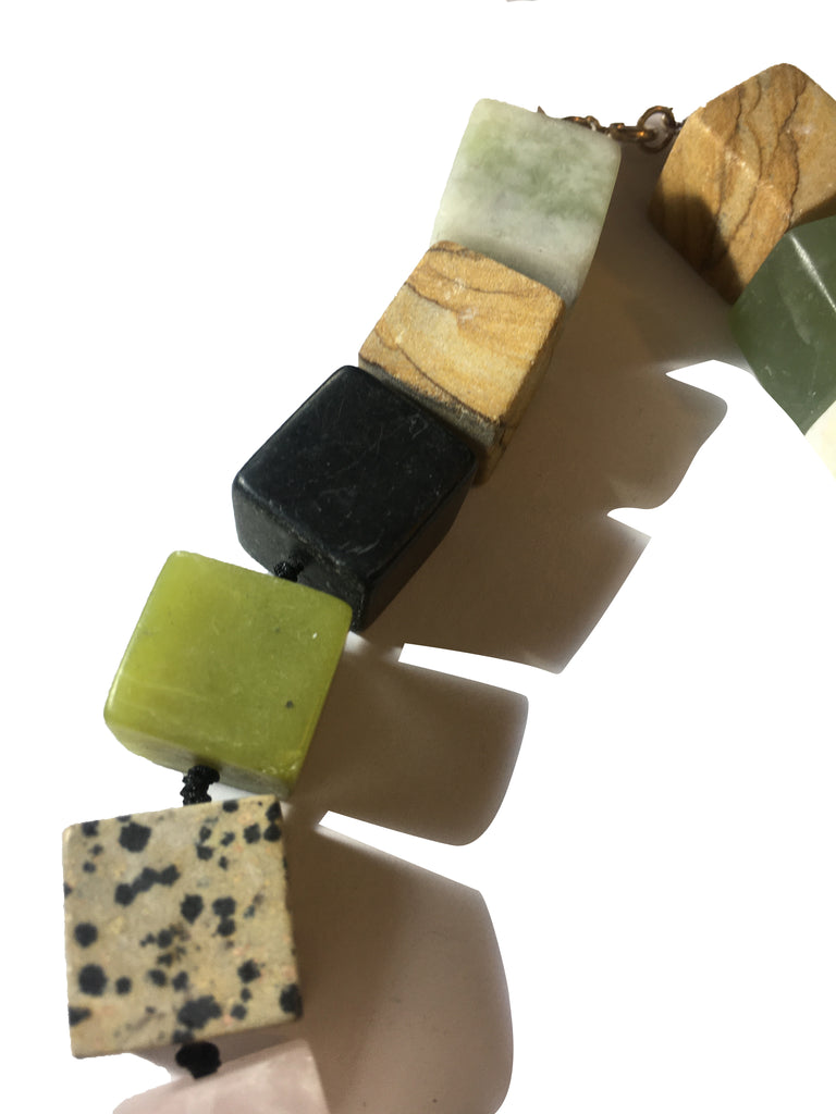 Natural Agate and Jasper Necklace - 18inch long - 18x18x18mm Square Beads