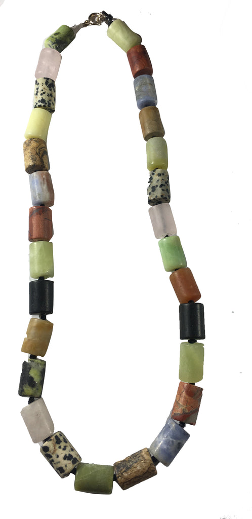 Natural Agate and Jasper Necklace - 18inch long - Cylindrical 15mm Long x 10mm diameter Beads