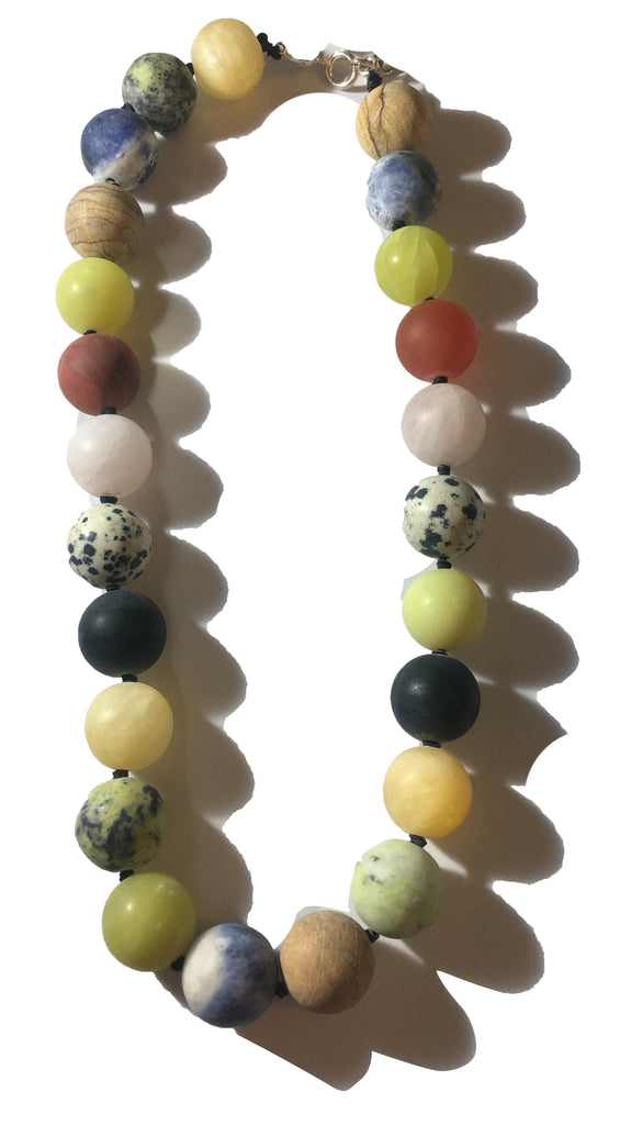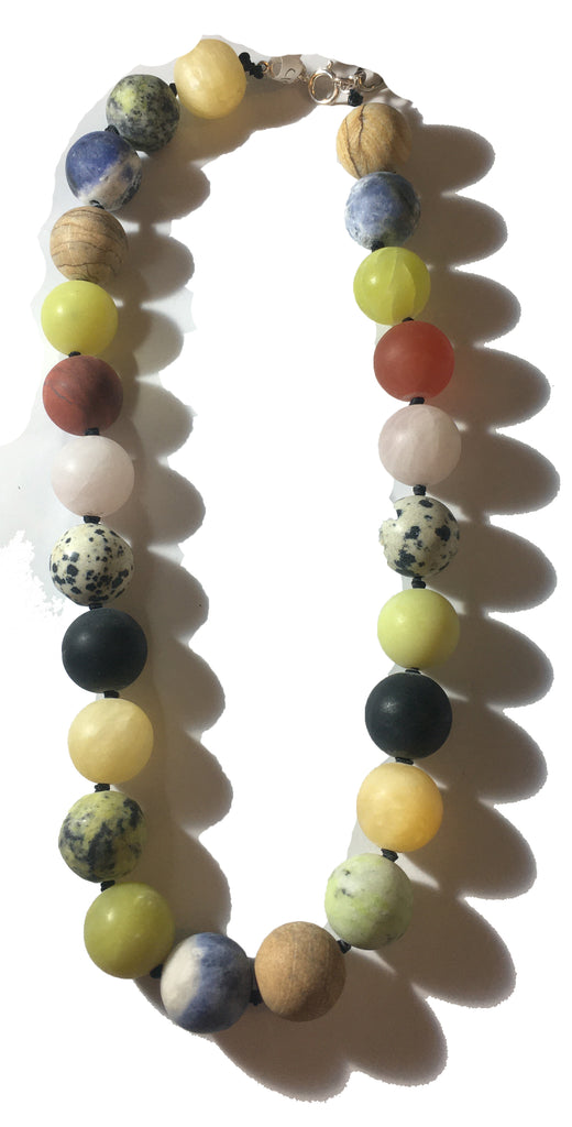 Natural Agate and Jasper Necklace - 18inch long - 15mm Round Beads