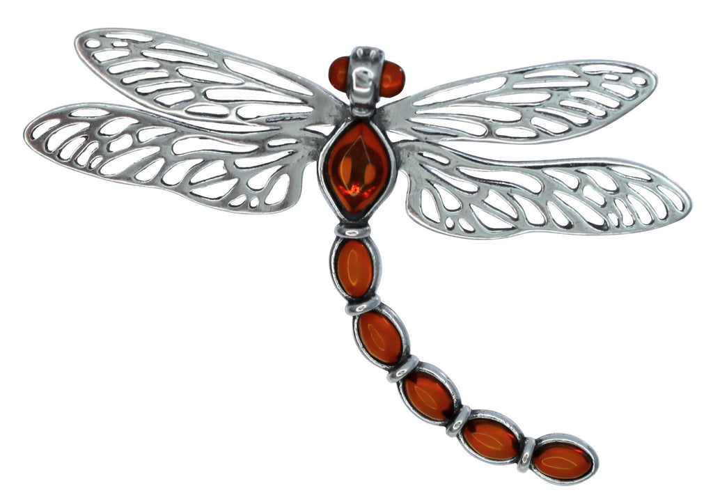 Genuine Baltic Amber Dragonfly Pendent - 925 Sterling Silver