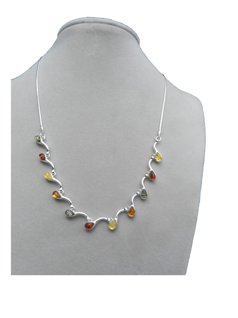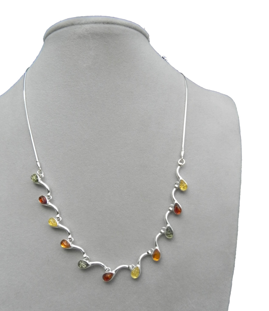 Genuine Baltic Amber Necklace - Multi Color Amber Leafy Chain - 925 Sterling ...